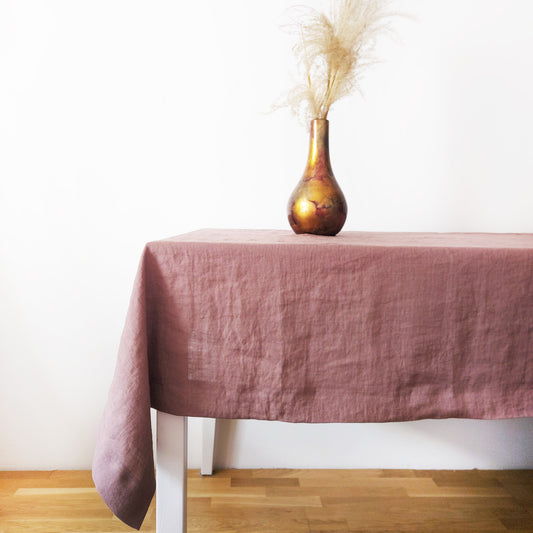 Natural Linen Tablecloth, Stonewashed Linen Tablecloth, 160g/m2 Coffee Rose