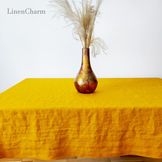 Natural Linen Tablecloth, Stonewashed Linen Tablecloth, 205g/m2 Mustard