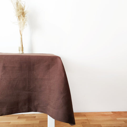 Natural Linen Tablecloth, Stonewashed Linen Tablecloth, 205g/m2 Chocolate