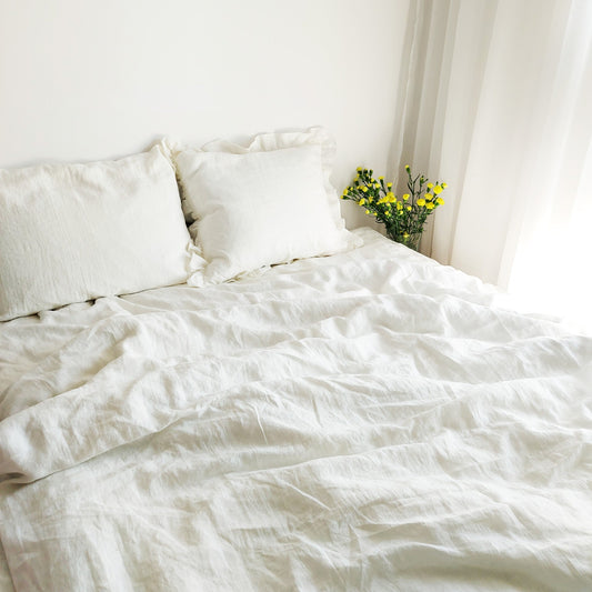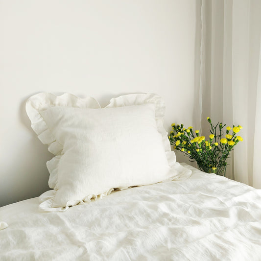 Ecru linen pillowcase with ruffle, linen stonewashed