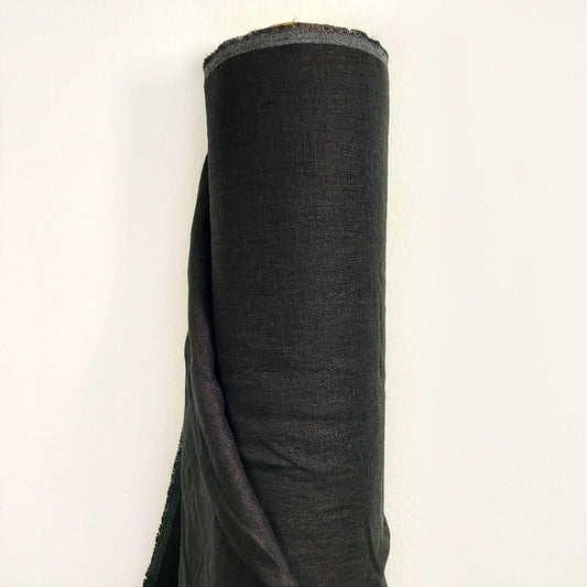 Linen Fabric Stonewashed, Soft Linen Fabric, 205g/m2, 145cm/57", Black Linen
