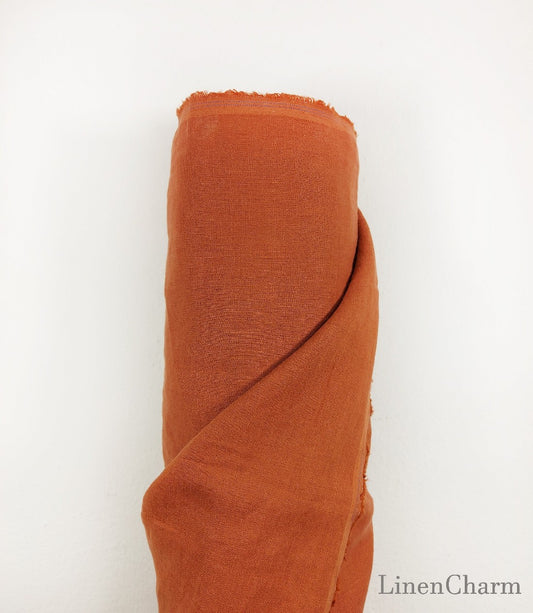 Linen Fabric Stonewashed, Soft Linen Fabric, 205g/m2, 145cm/57", Cinnamon