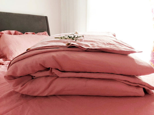 Linen Duvet Cover in Vintage Pink Color, Stonewashed Linen