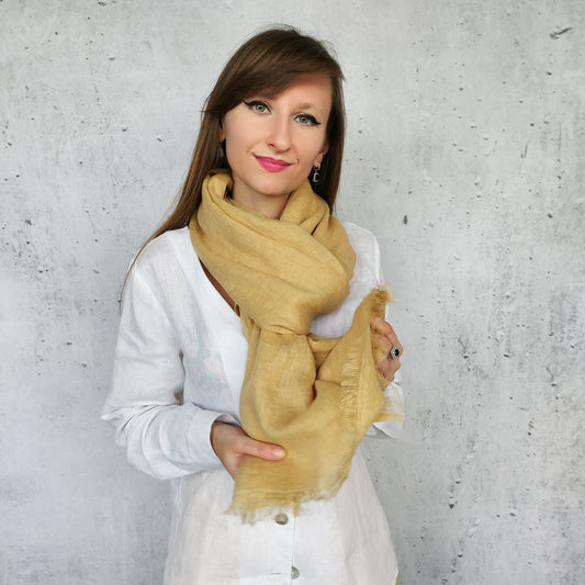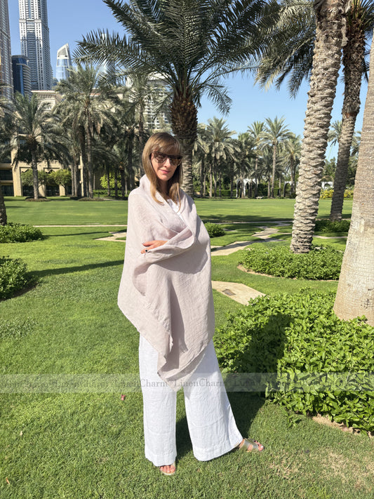 Beige Sand Linen Scarf – Lightweight Softened Wrap for Men & Women