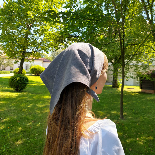 Linen Bandana (82 × 38 cm / 32 × 15″) – Headscarf, Headband & Neckerchief, Gray | LinenCharm