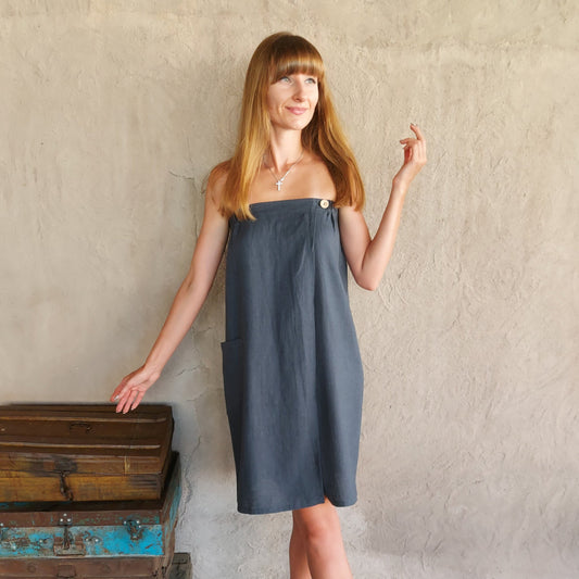 Linen Towel Wrap for Women, Sauna Pareo Wrap, Towel Wrap, Anthracite