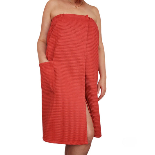 Sauna Set Wrap Towel + Hand Towel, Sauna Wrap, Towel Wrap for Women, Red Coral