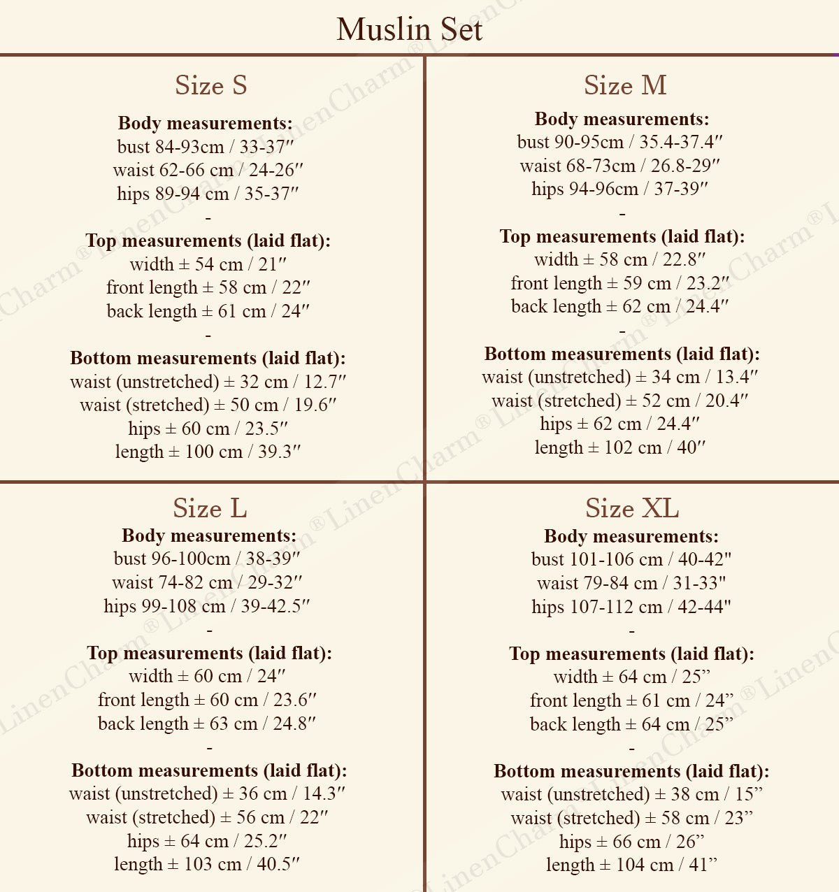 Cotton muslin top and trousers set, Muslin clothes set S-XL