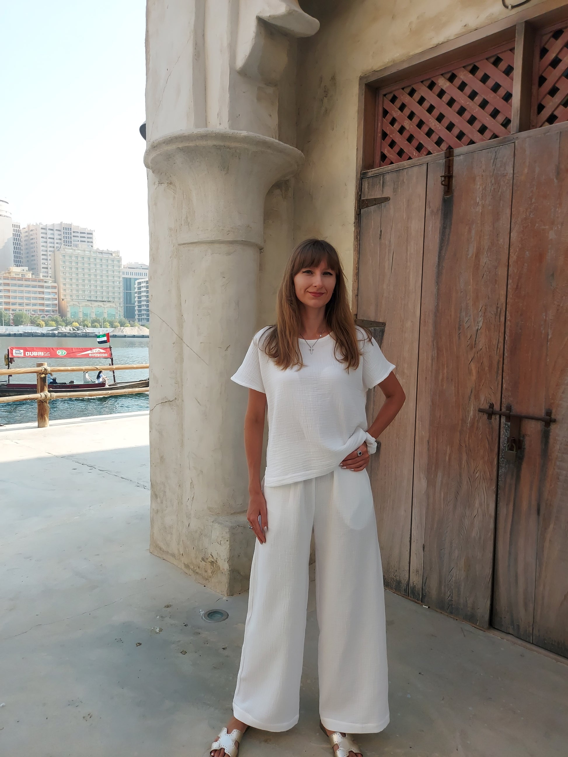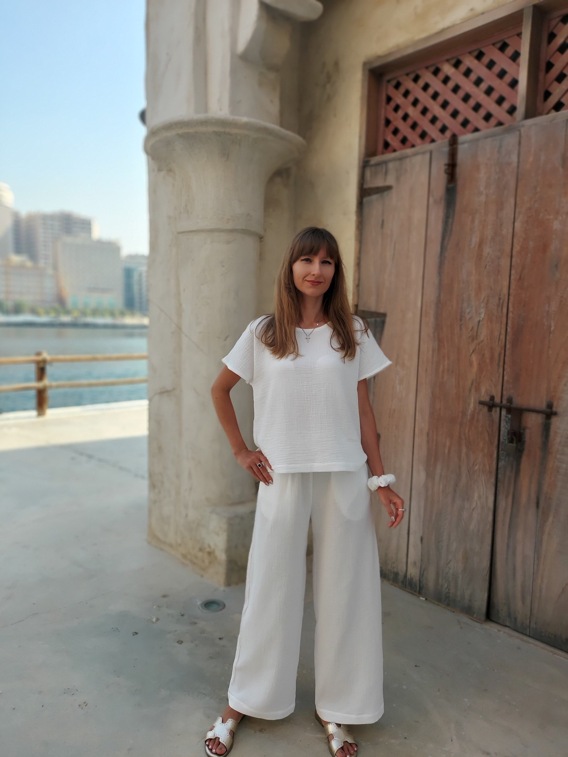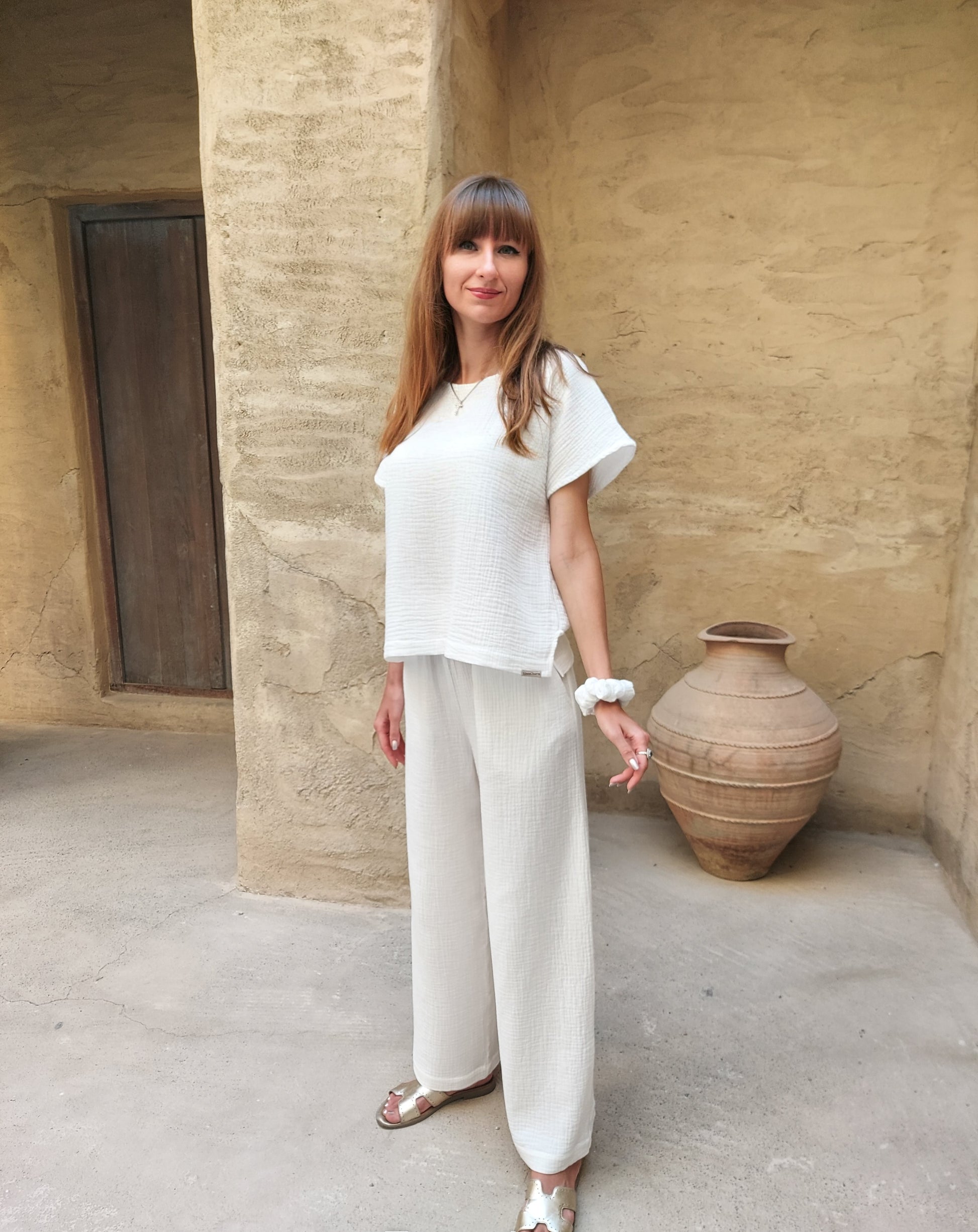 Cotton muslin top and trousers set, Muslin clothes set S-XL Off White