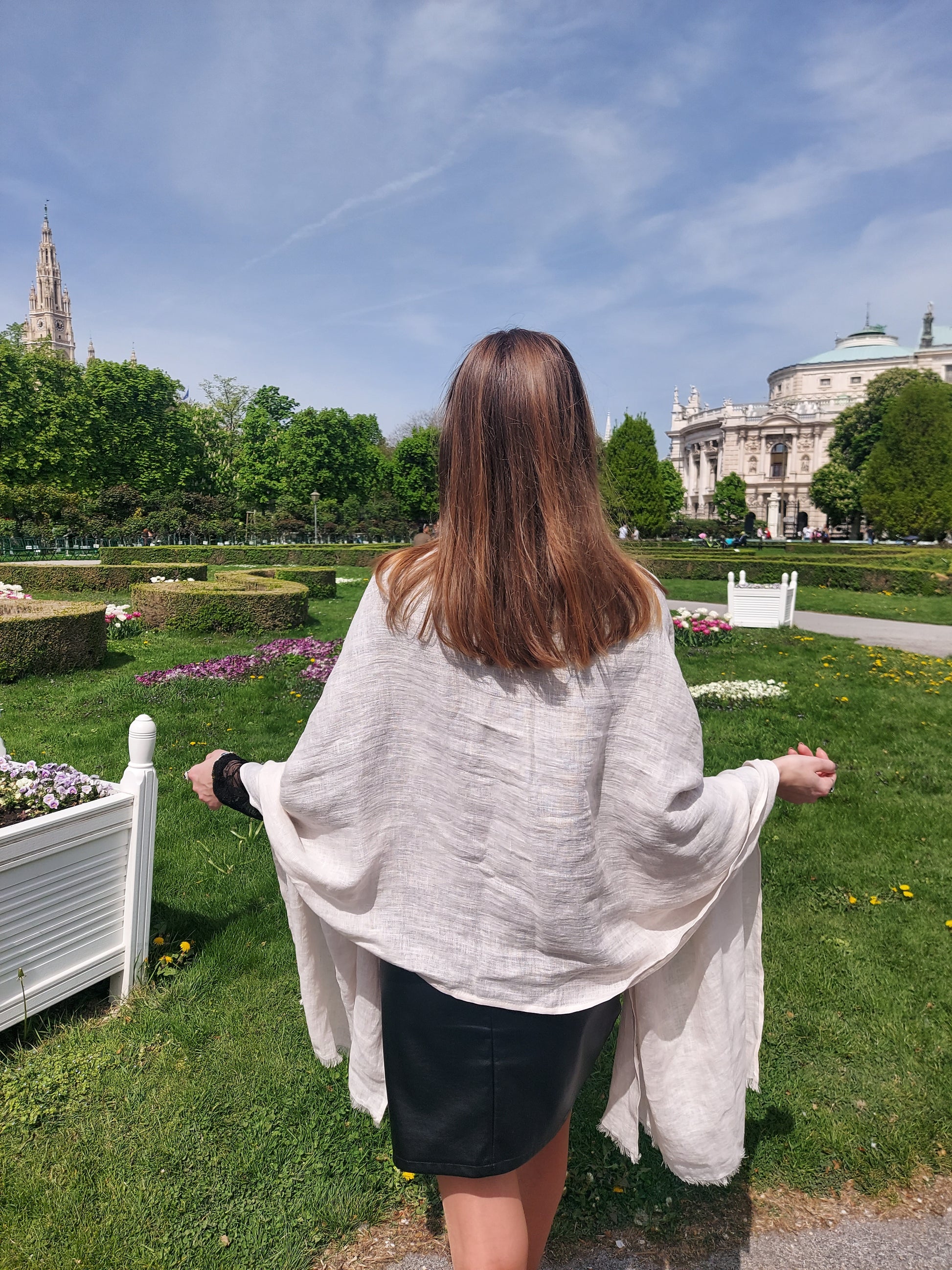 Linen is not only durable and biodegradable — it softens beautifully with wear and age. Our scarves are produced with sustainability and care in every detail.