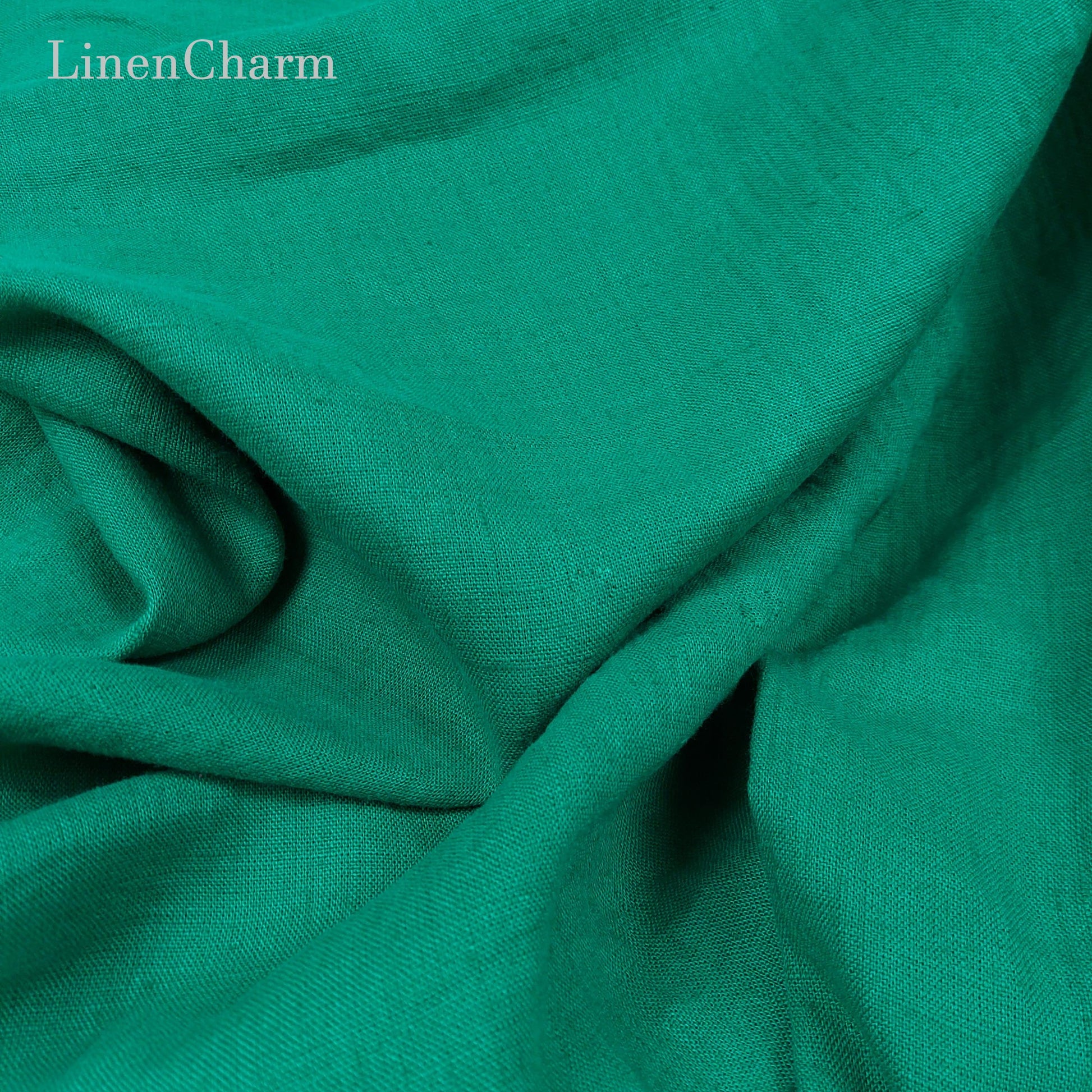 Linen fabric by metre, Soft linen fabric, Emerald linen fabric