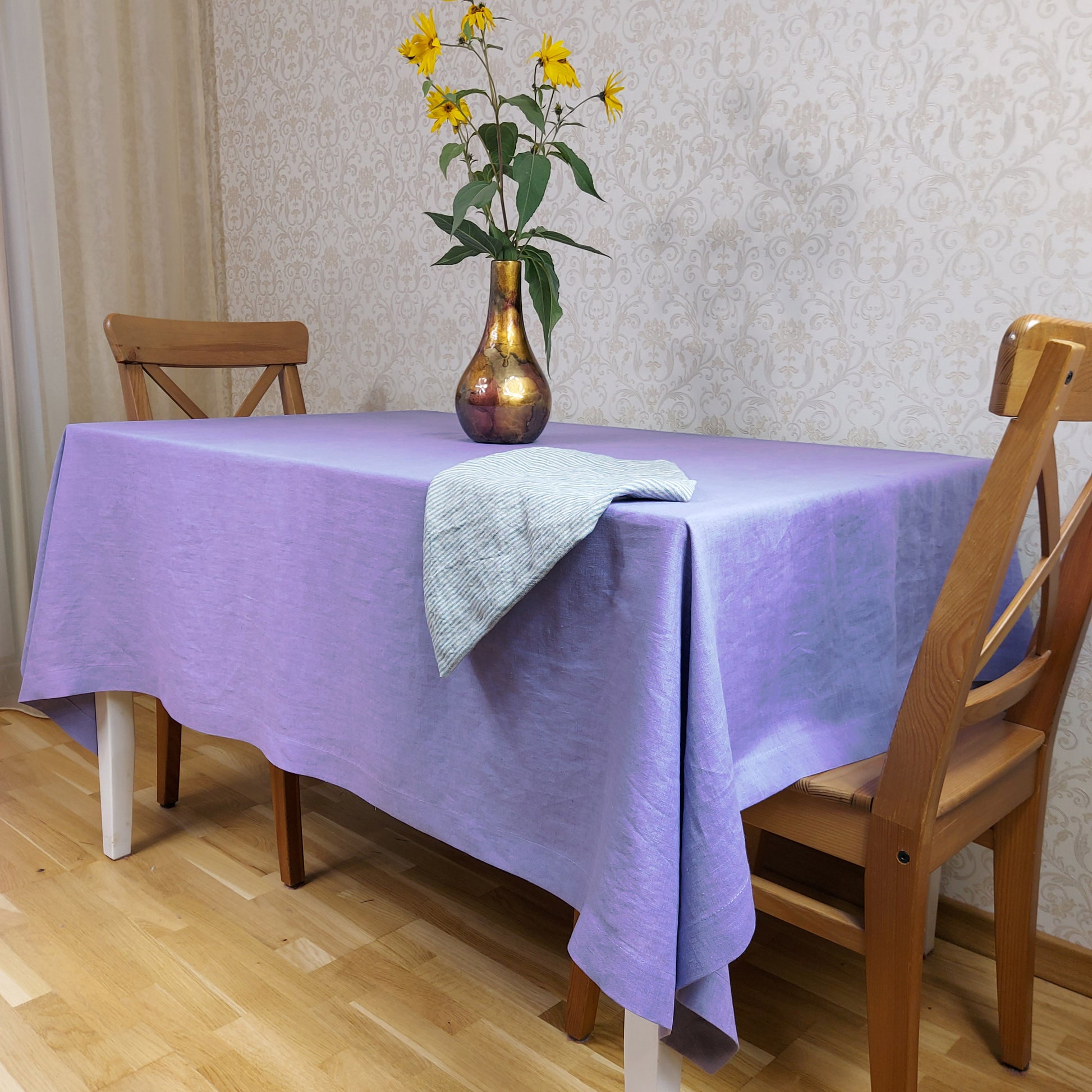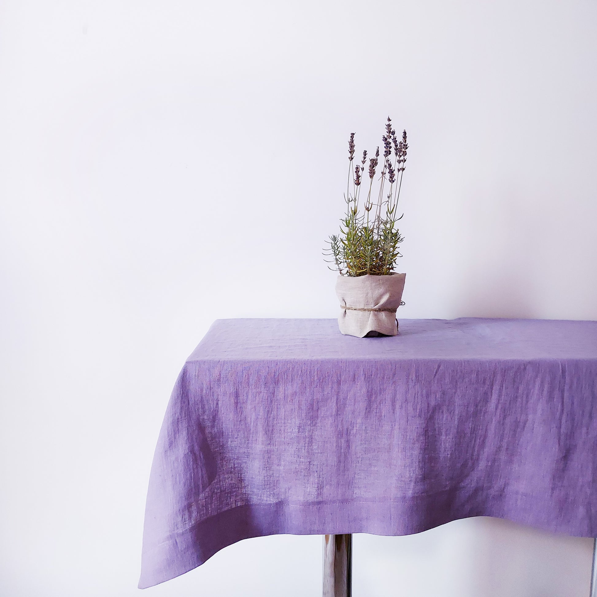 Natural Linen Tablecloth, Stonewashed Linen Tablecloth, 205g/m2 Lavender