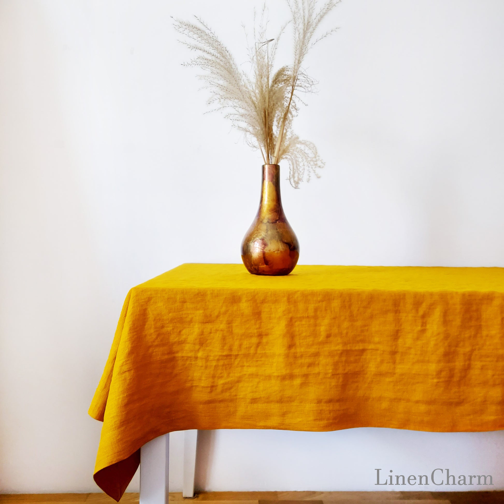 Natural Linen Tablecloth, Stonewashed Linen Tablecloth, 205g/m2 Mustard