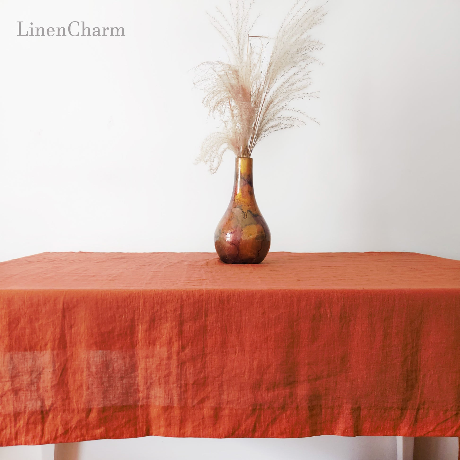 Natural Linen Tablecloth, Stonewashed Linen Tablecloth, 205g/m2 Red Brick