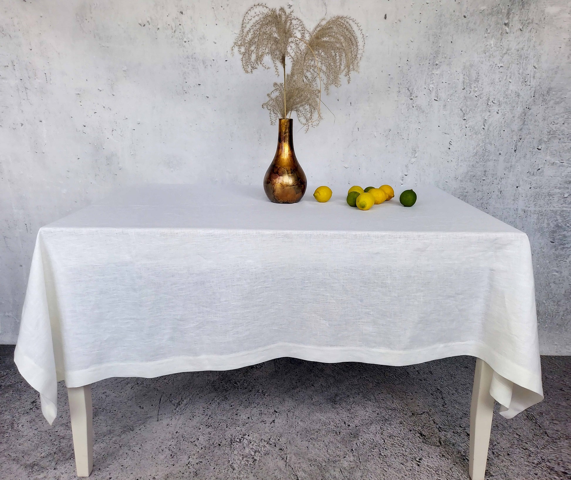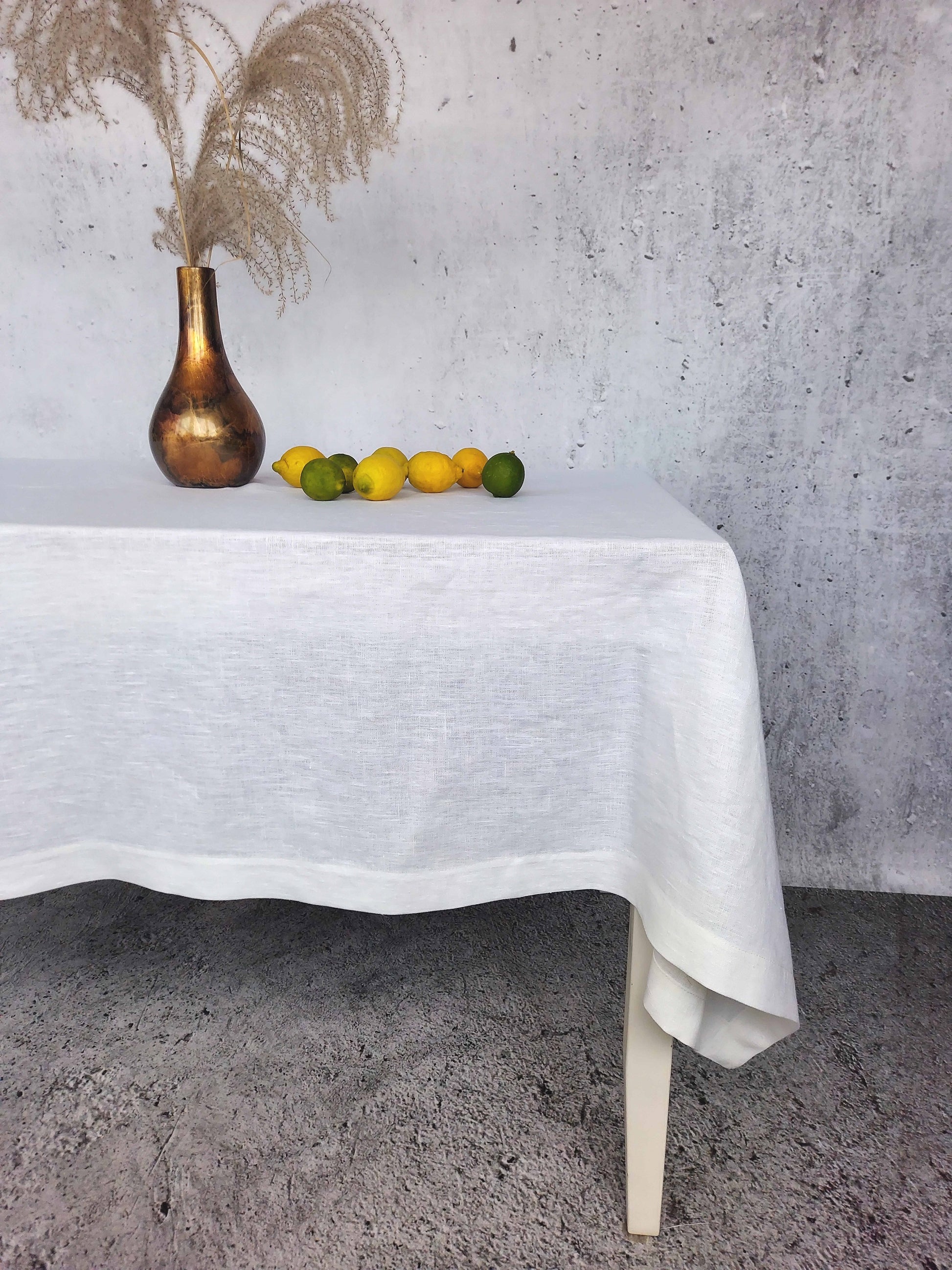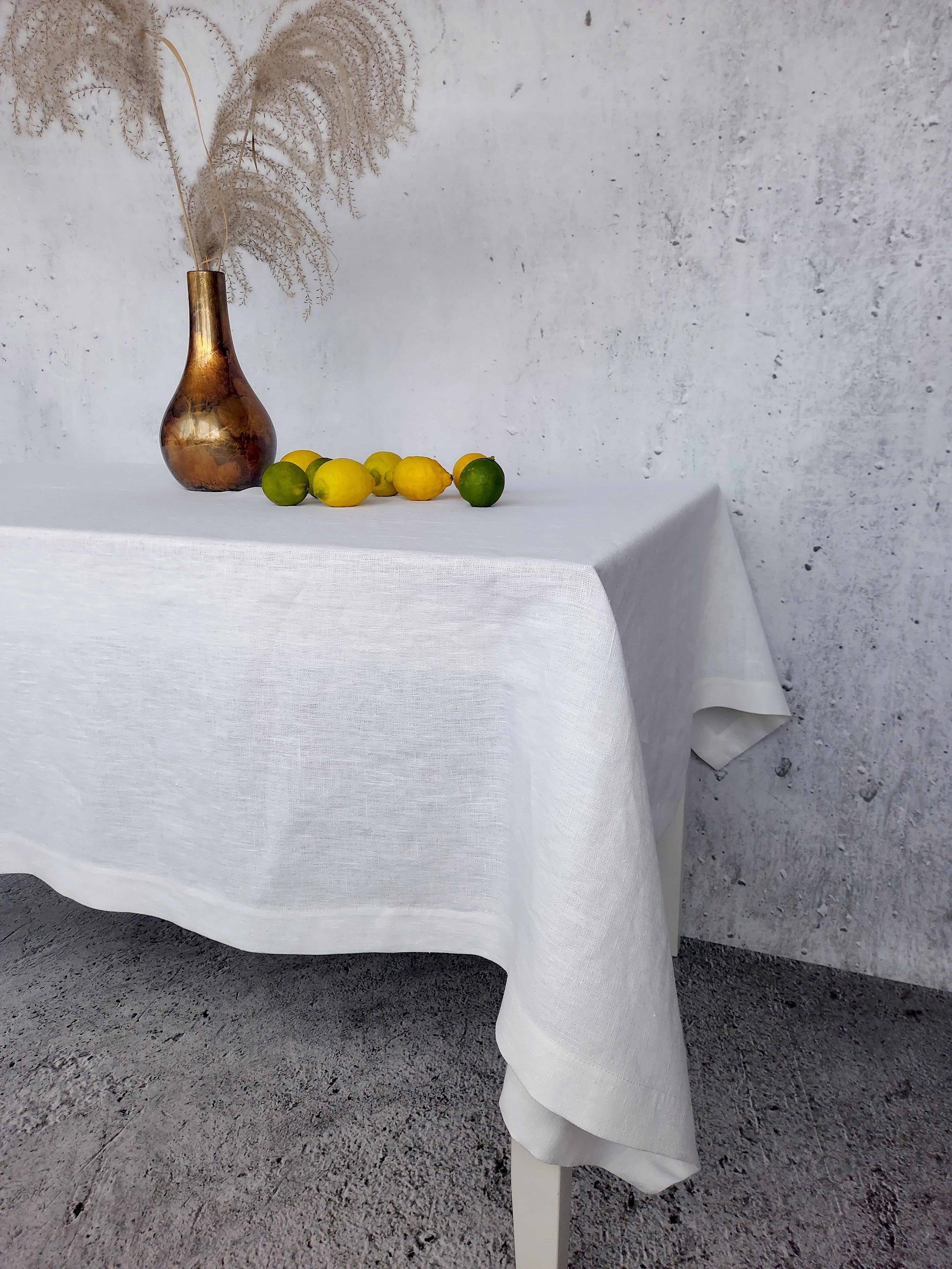 Natural Linen Tablecloth, Stonewashed Linen Tablecloth, 205g/m2 White