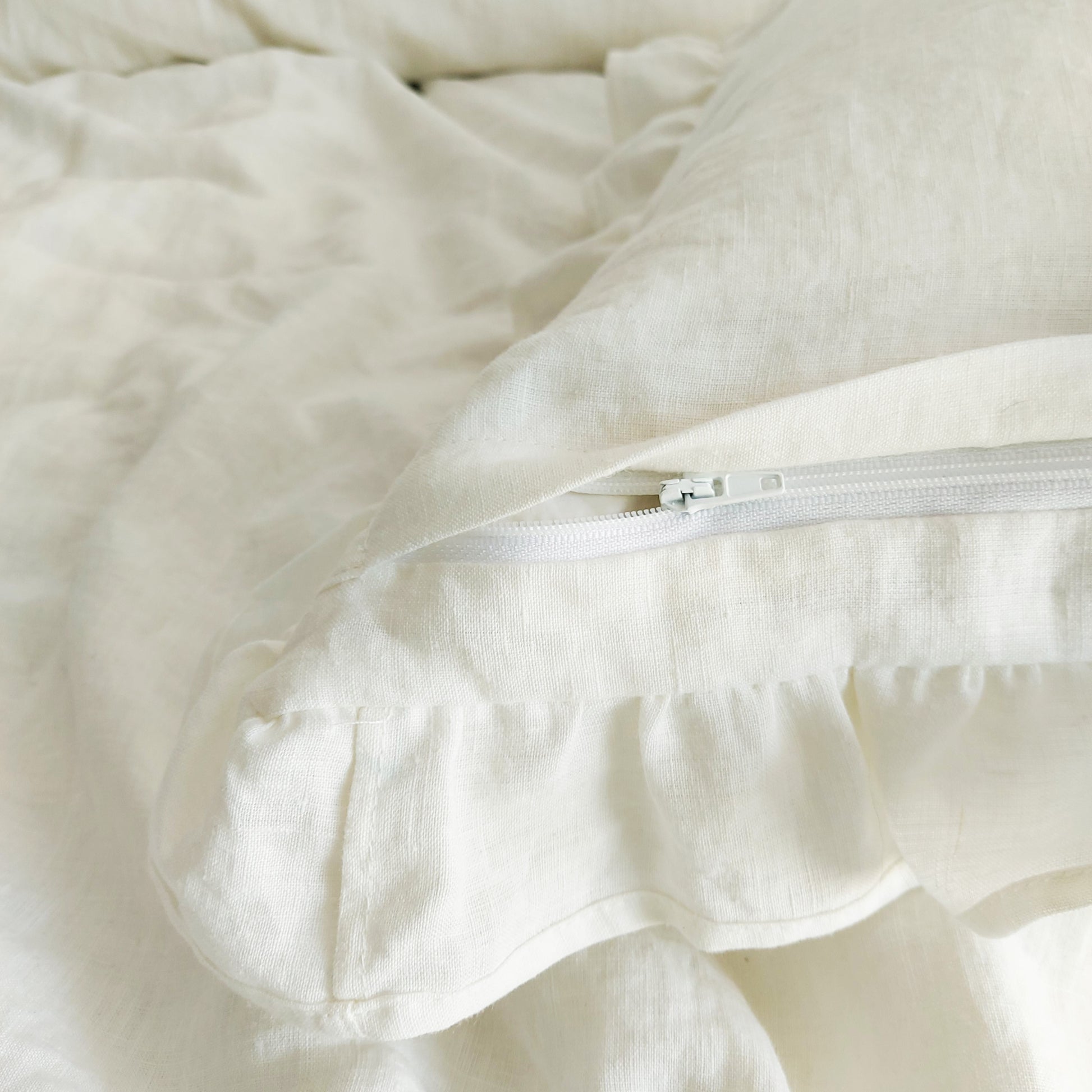 Ecru linen pillowcase with ruffle, linen stonewashed