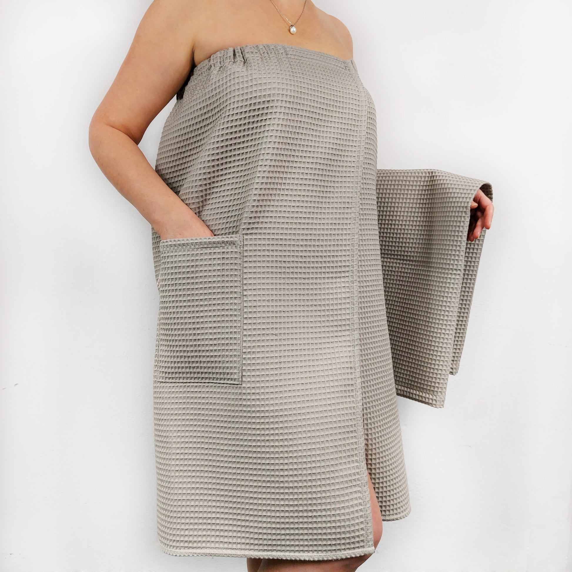 Sauna Set Wrap Towel + Hand Towel, Sauna Wrap, Towel Wrap for Women, Gray Beige