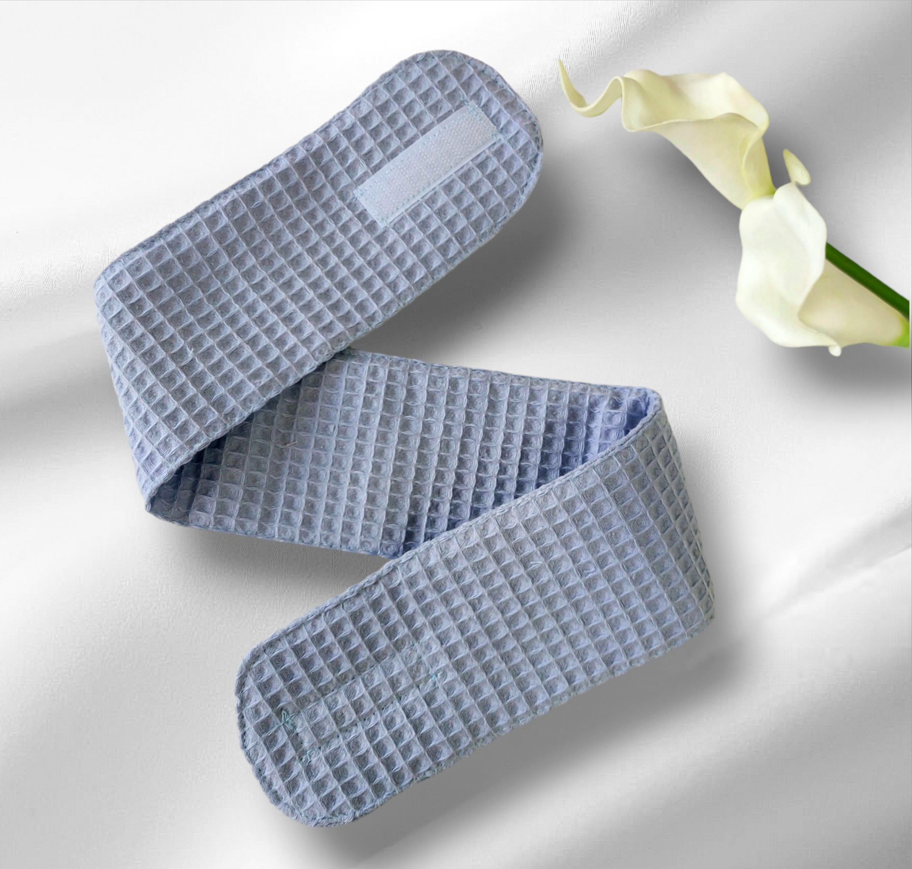 Our cotton spa headbands are designed to keep your hair comfortably in place during facials, makeup routines, or face washing. Made from 100% waffle-textured cotton, these headbands are soft, breathable, and gentle on your skin.