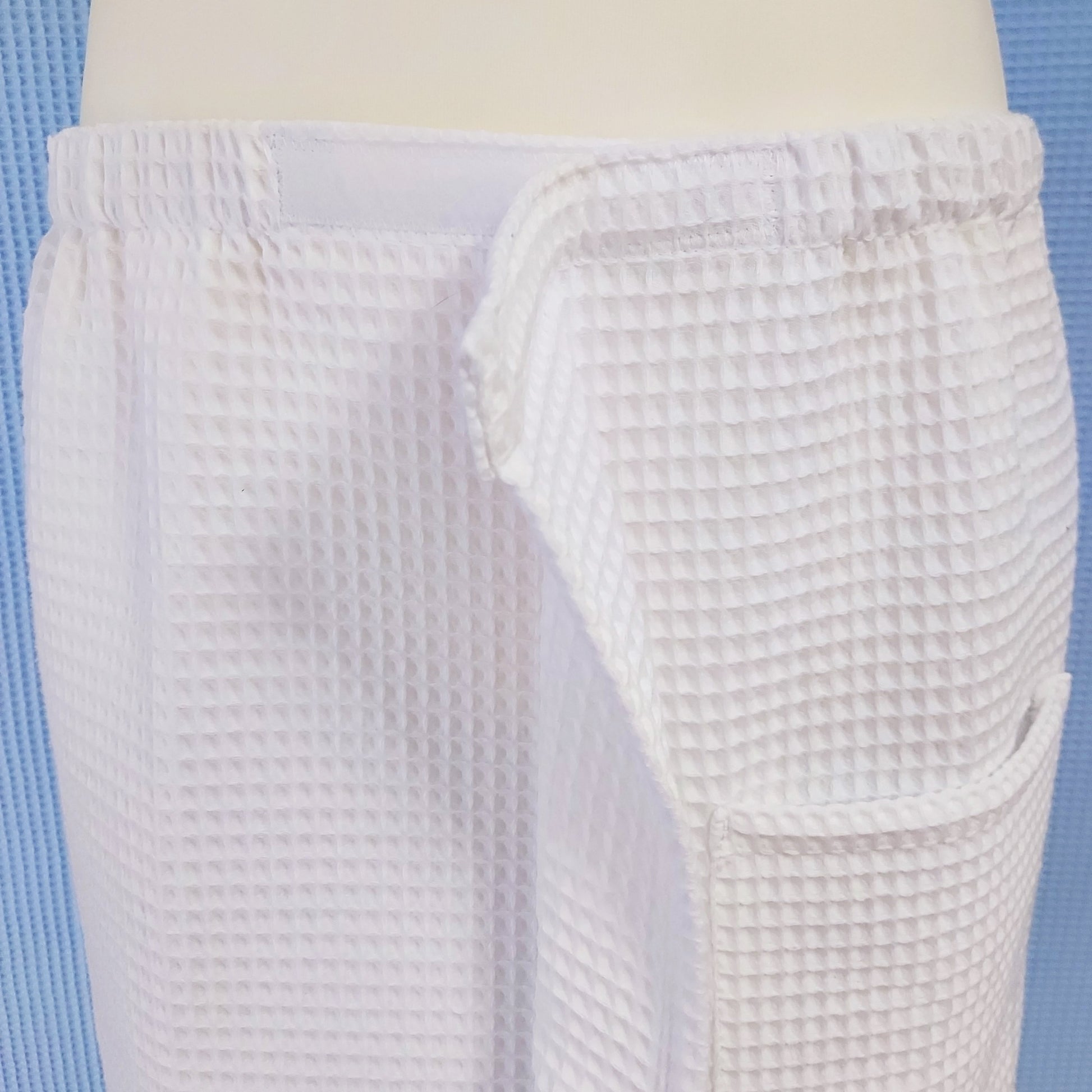 Wrap Towel is made of premium White waffle weave cotton, perfect for a sauna or spa day. Featuring an adjustable waistband for a secure and comfortable fit, it is ideal for men. With its breathable and lightweight material, this wrap towel is both practical and stylish.